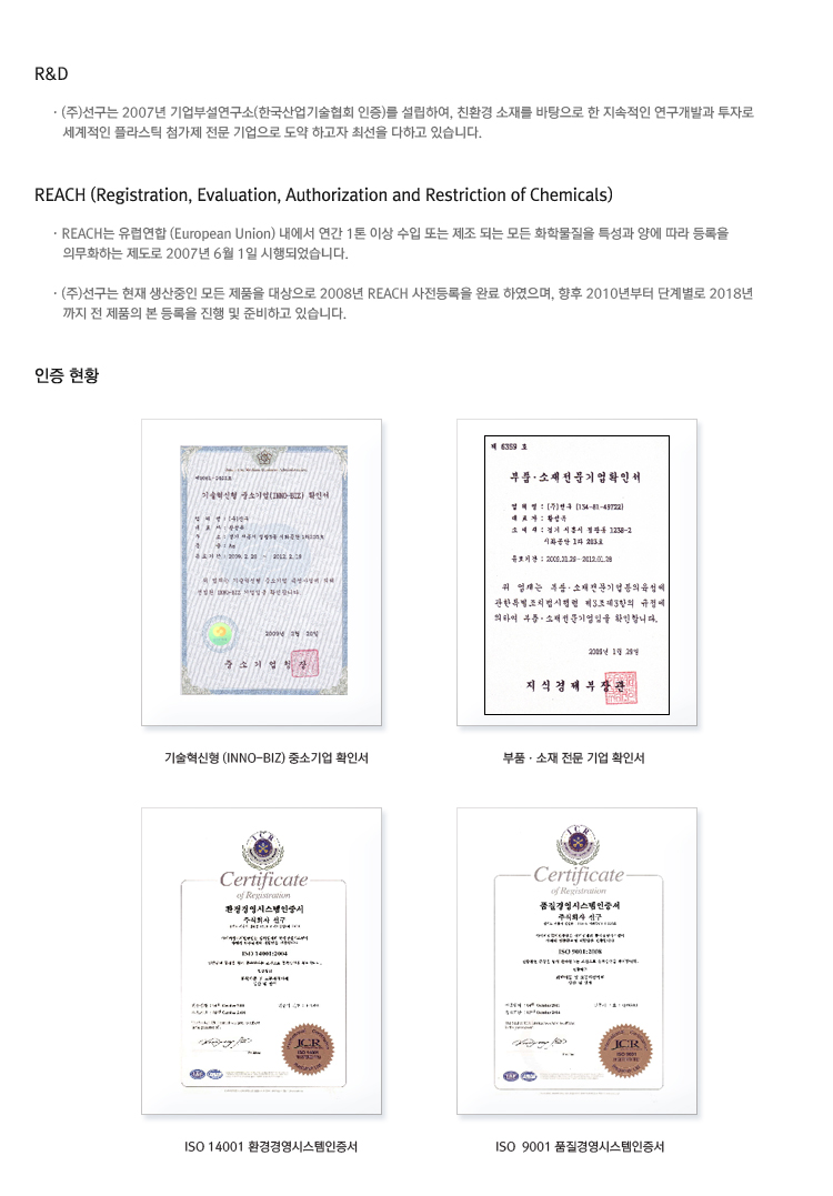 REACH & 인증현황